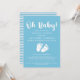 Celebra la futura madre moderna a través de las millas con una ducha virtual en línea para bebés. Esta simple y mínima invitación a ducharse para un niño pequeño presenta "¡Oh bebé!" en un elegante guión de pincel blanco y una acuarela blanca de pies de bebé, todo con un fondo azul. Puede personalizar fácilmente con los detalles de la ducha en línea, incluyendo un enlace de acceso en línea, información del registro, dónde enviar tarjetas y regalos o la opción de abrir en línea y enviar más tarde, y dónde obtener más información. En el reverso se coordina la franja azul y blanca.