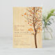 Invitación rústica y encantadora para un acontecimiento al aire libre del otoño. Colores mostrados: Gama de marrón claro a Brown oscuro y al naranja del moho a de color rojo oscuro. El falso fondo del modelo de la viruta y poca imagen del pájaro del amor continúa en la parte trasera (impresión RSVP adicional o información del viaje sobre el revés).