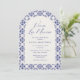 "Viva La Nova" Celebra la futura novia con esta elegante invitación a la ducha de novias de inspiración mexicana con un hermoso diseño de talavera azul.