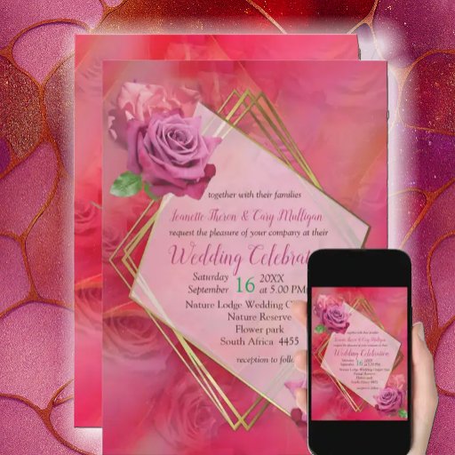 Esta es la elección para un marco dorado apasionado y un diseño abstracto de magenta rosa con el chica en la ventana son una magnífica elección para un boda en 2023