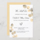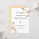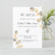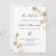 Un fondo blanco adornado con eucaliptos dorados, brotes. Personaliza y tu nombre y detalles de la ceremonia. Atrás: fondo dorado.