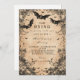 Establezca la escena para una celebración escalofriante con este obsesionado diseño gótico de Halloween. Con murciélagos negros vintage en vuelo contra un fondo de pergamino envejecido, enmarcado por viñas espeluznantes y follaje, es perfecto para una reunión elegante y oscura. Un diseño misterioso e intemporal que invita a los clientes a pasar una noche de emociones y sombras.