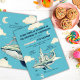 La invitación al "Vuelo mágico de ballenas" muestra una ballena que lleva un castillo y un patio de recreo en la parte trasera, además de un barco con una princesa. Todo está puesto contra un cielo azul con lunas, estrellas y nubes. Puedes descargarlo al instante. Es genial para fiestas de cumpleaños al aire libre o cubiertas, especialmente si te gustan las ballenas o el océano. Perfecto para cualquiera que acepte la magia de la imaginación. Como la invitación incluye un castillo de princesa y un chica en el bote, creo que está más orientado a los chicas. Más allá de su encanto visual, esta invitación ofrece una personalización perfecta, permitiendo texto personalizado, fuentes, tamaños y colores.