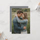 This invitation features a warm and intimate design of two individuals embracing in a natural setting, surrounded by tall grasses and soft greenery. The color palette includes earthy tones with shades of green and beige, complemented by the medium blue denim jackets worn by the figures. The photographic style captures a realistic and tender moment, evoking feelings of happiness and connection. Perfect for celebrating love and togetherness, this design is ideal for weddings or romantic events, offering a serene and heartfelt aesthetic.