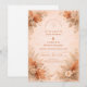 Inspired by rich autumn florals and romantic seasonal palettes, this wedding design features layered roses, dahlias, and soft foliage in warm rust, blush, and cream tones. The painterly floral border frames the layout beautifully, creating a refined yet inviting atmosphere that feels both classic and celebratory.