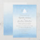 Blue watercolor depiction of the water meeting the sky. Custom monogram with sailboat
