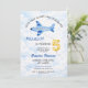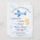 Invitación Watercolor Blue & Gold Airplane 5th Birthday