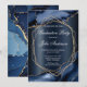 Watercolor Blue Gold Marble Graduation Party Invitation
