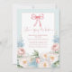 Elegant Watercolor Blue Pink Bow Floral Bridal Shower Brunch Invitation