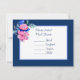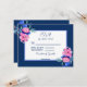 Tarjetas RSVP con bonito acuarela color rosa y azul flores con fuente azul. Elegante tema boda floral.