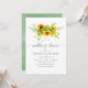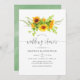 Invitación a la despedida de soltero de girasol pintado a mano con fondo de agua verde salada.