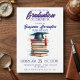 Invitación Watercolor Books and Cap Graduation Celebration