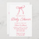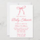 Invitación Watercolor Bow Mano Rosa Escrito Bebé Chica Ducha