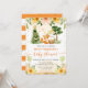 Watercolor Cute Floral Baby Fox diseño con flores de verano beige y amarillo, bordes dorados y confeti purpurina de oro con fondo de rayas naranjas