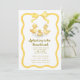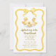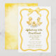 Celebrate the parents-to-be with this charming watercolor baby shower invitation featuring three adorable yellow ducklings splashing in playful puddles. This whimsical design is framed by a delightful wavy yellow border and topped with a sweet, hand-painted yellow bow, making it perfect for a gender-neutral or 'splashing into parenthood' theme.