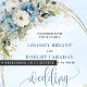 Set the tone for an unforgettable celebration with this elegant watercolor wedding invitation, beautifully designed with dusty blue florals, soft white peonies, and delicate eucalyptus