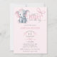 Invitación Watercolor Elephant Pink Bow Baby Girl Shower