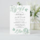 Invitación a la ducha de las novias botánicas con guión verde eucalipto. Puede personalizar esta invitación a la ducha de novia haciendo clic en el botón "Personalizar" de arriba. La tarjeta cuenta con un moderno y elegante entorno natural de eucalipto, con escritura y diseño moderno. CONSEJO: Ideal para fiestas sorpresa, duchas para bebés, recepción de bodas y fiestas jubilados.