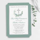 Elegant Watercolor Eucalyptus Leaves Wreath First Holy Communion Invitation. Silver Frame and Cross.
