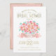 Esta invitación a la ducha nupcial de aspecto vintage cuenta con un ramo de flores acuáticas con colores primaverales de rosa, albaricoque y verde. La parte trasera es un hermoso patrón oro rosa suave con un marco dorado. Agregue fácilmente los detalles del evento utilizando la plantilla proporcionada.