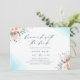 Celebre con estilo con esta Invitación a la ducha de agua de brunch floral, perfecta para una reunión en la playa o en el destino. Con elegantes flores acuáticas en tonos azules, turquesa, melocotón y coral, este diseño de moda capta la belleza brillosa del verano. Con sus suaves tonos costeros y sus refinados detalles, es la invitación ideal para un brunch de novias con estilo e inolvidable.