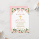 Invitación Watercolor Floral Pink Bow Gold Baptism