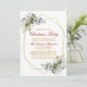 La elegante Invitación de los Navidades de la Fiesta de Acuarela de Verdor incluye hermosas acuarelas de vegetación botánica, hojas de eucalipto, bayas y otros hermosos follajes. Marco Geométrico Oro. Guión rojo y dorado.