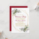 Invitación Watercolor Greenery Berries Navidades Red Gold