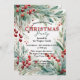 Invitación Watercolor Greenery & Red Berries Christmas Party