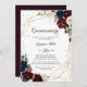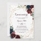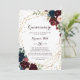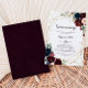 Esta invitación a la Quinceañera de color acuático ilustrado geométrico es perfecta para una simple fiesta de cumpleaños número 15. El diseño presenta acuarelas pintadas a mano color azul marino, burdeos, rojos, rosas ondulados y peonías con elegantes hojas verdes, inspirando la colorida e idílica belleza del otoño.