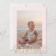 Esta elegante invitación para el segundo cumpleaños tiene flores silvestres acuáticas y texto rosa. La parte de atrás es rosa con una gran foto. Las mariposas añadidas le dan un toque más jovial.