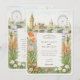 Celebra tu boda de destino con estilo con esta invitación a la boda de color agua en Londres, que incluye ilustraciones pintados a mano de emblemáticos monumentos de Londres, entre ellos el Big Ben, el London Eye y un encantador autobús rojo de dos pisos. Delicadas flores enmarcan el diseño para un toque romántico, lo que lo hace ideal para bodas en el Reino Unido o para parejas amantes de Londres. Personalizable completo con los detalles de su boda. RSVP coincidente y tarjetas de detalles disponibles.
