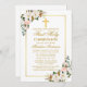 Elegante acuarela Magnolias y Rosas Invitación floral a la primera comunión sagrada incluye magnolias blancas, rosas rosas rosas rosas y vegetación. Marco dorado. Cruz de Oro.
