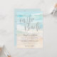 Simple Seaside Watercolor Summer On The Beach Wedding Invitation. A calming blue and tan watercolor background sets the scene, with the shoreline set at a slight angle for an elegant yet modern coastal vibe. The artwork keeps a soft, slightly abstract feel as the waves meet the sand.