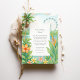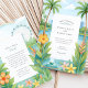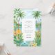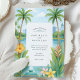 Set the scene for your tropical destination wedding with this watercolor Orlando invitation featuring lush palm trees, vibrant florals, and serene water views.
