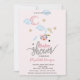Acuarela, pequeño pony, estrellas, luna y nubes de fondo rosado.Estas invitaciones para la ducha de bebé se personalizan fácilmente para tu evento simplemente agregando tus detalles.