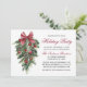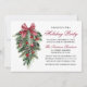 Invitación Watercolor Pines Berries Bow Red Holiday Party