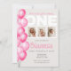Invitación Watercolor Pink Balloon Photo First Birday