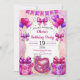Invitación Watercolor Pink Cake and Floral Heart Birthday