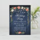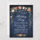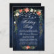 Invitación Watercolor Poinsettia Blue Wood Luces Holiday
