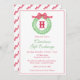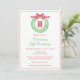 Invitación Watercolor Red Polka Dot Bow Monogram Wreath Party