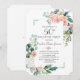 ¡CUALQUIER EDAD! Elegante y romántico diseño con magníficas acuarelas de color rosa rubor, melocotón y flores blancas alrededor de un marco roto verde, un separador floral, todo sobre un fondo blanco; en la parte posterior el mismo fondo y un separador floral con sus iniciales. Utilice Personalizar esta plantilla para agregar su información. Para ver elementos coincidentes, por favor, visite mi colección de Rubor White Peonies.