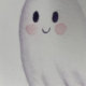 Invitación de cumpleaños 1 a Boo de Halloween. Fantasma acuarela, gorra de bruja, caldero, escoba, calabaza, vela.