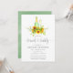 El brunch de girasol color agua pintado a mano y la invitación burbujeante con el fondo de un lavado de color verde salado.
