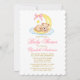 Invitación Watercolor Teddy Bear Moon Baby Shower Pink