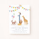 A delightful choice for parents looking for a Wild One first birthday invitation with classic safari animals, soft watercolor artwork, and timeless appeal.
