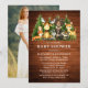 Invitación Baby Shower de Watercolor Woodland Animals. Entre los animales para bebés se encuentran: Oso, ciervo, alce, mapache, conejo conejo, zorro y búho con un fondo de pinos. Pino verde forestal y madera rústica de campo. Foto de vuelta.