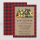 Invitación Baby Shower de Watercolor Woodland Animals. Entre los animales para bebés se encuentran: Oso, ciervo, alce, mapache, conejo conejo, zorro y búho con un fondo de pinos. Estilo De Papel Kraft, Pino Verde Forestal, Buffalo Rojo Tapado.
