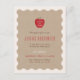 Created to coordinate with the "Wavy Apple" preschool graduation announcement collection, this modern, charming graduation invitation features a sweet, halftone apple illustration with a "Class of (Year)" message overlay. Beneath the illustration is the message "the apple of our eye", followed by the name of your child and their school, as well as the graduation party details. The text and design is placed over a faux kraft background, with a playful, beige wavy frame border. The back of the card features a coordinating halftone apple pattern.
