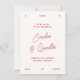 A fun wedding invitation featuring your custom photo framed by a hand-drawn wavy border. The wedding date appears at the top, with the couple's names along the bottom. The back of the card has your invitation text with the names in chic script calligraphy. We have chosen a cherry red color against a cream background, but all colors are fully customizable to match your style and theme. View the collection linked on this page for the full wedding suite or browse our store for more wedding invitations.